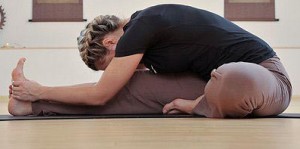 Auf den Boden setzen, das rechte Bein strecken, das linke anwinkeln. Die linke Fußsohle an die rechte Oberschenkelinnenseite anlegen. Mit der Stirn zum rechten Knie gehen, die Stirn muss das Knie berühren (eventuell das Bein leicht beugen). Gleichzeitig mit den Händen die rechte Fußsohle greifen. 30 Sekunden halten, mit dem anderen Bein wiederholen.